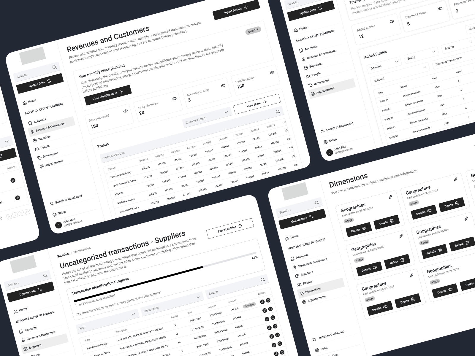 Elle permet aux entreprises de piloter leur activité via quatre grands flux métiers : revenus, fournisseurs, RH et ajustements comptables.