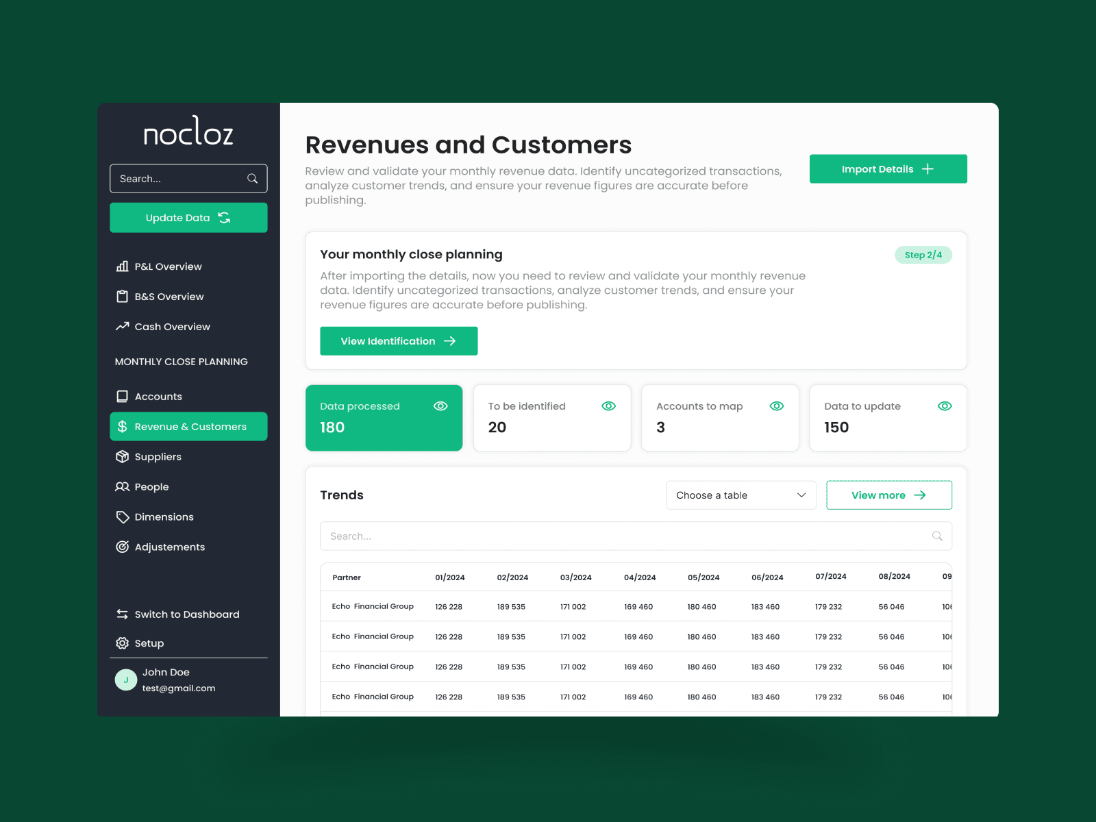 Nocloz est une plateforme de Business Intelligence spécialisée dans l’analyse financière mensuelle.